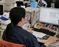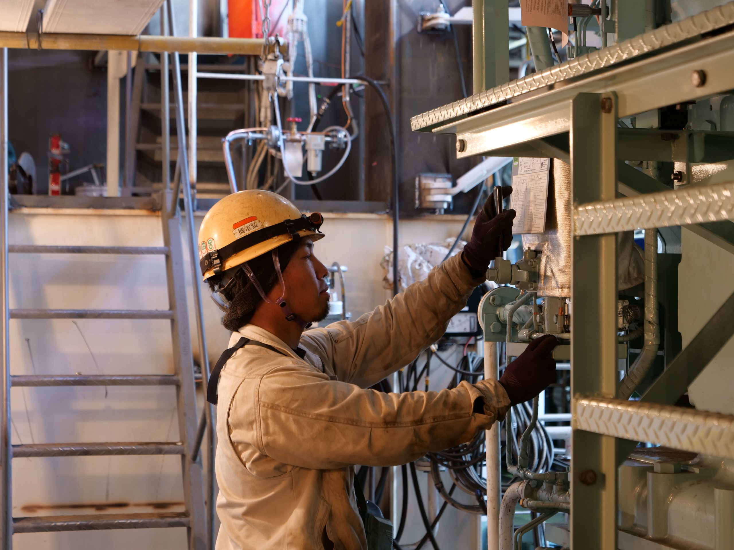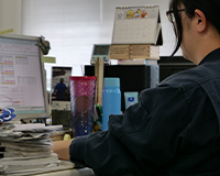 僕の部署は鋼材の加工をしています。新品の鉄板が工場(こうば)に入ってきて、それを機械で切断して、その後曲げたり更にプラズマ切断機で切断したりして、次の工程に渡すという仕事です。どうやったら次の工程で仕事がしやすいか、後工程のことを常に考えるようにしています。